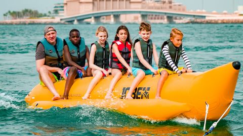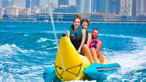 If you're a speed-loving thrill-seeker then this towable donut or banana ride is guaranteed to get your excitement level going! Get towed at high speed and bounce over the waves around the iconic Palm Jumeirah. Spin, jump and glide across the blue waters, whilst having the time of your life with your friends and family!