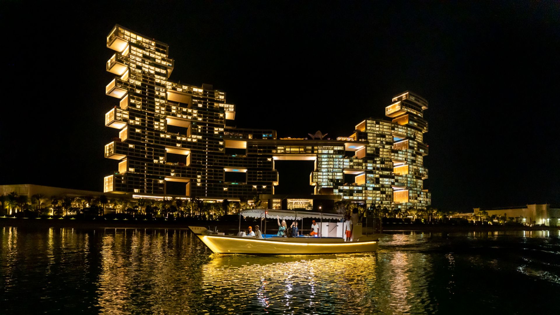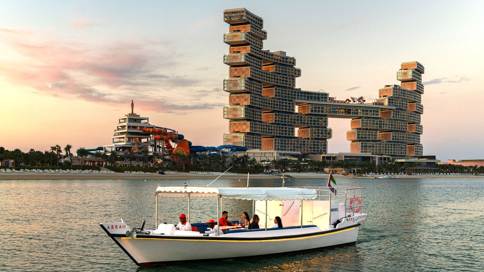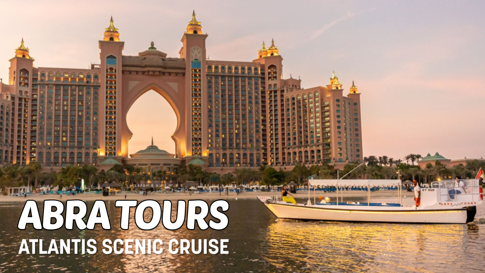 Our Atlantis Scenic Cruise is a two-hour cruise that introduces the unique vibe of Dubai. One of the most iconic landmarks of the city is the Atlantis, The Palm hotel, located on the man-made Palm Jumeirah Island. Boasting an undeniably gorgeous and panoramic view, the Palm Jumeirah area turns into a fairytale once the lights on the hotels, towers, and shorelines turn on! This incredible cruise offers a different and unique way to discover the waters of Dubai. We will take you along to spot the glitzy hotels, posh villas, luxurious apartment towers, and the upmarket global restaurants surrounding the tree-shaped Palm Jumeirah, the unique man-made island – everything you need to see when you visit Dubai! Booking our Atlantis Scenic Cruise is guaranteed to deliver an unforgettable experience. Our crew welcomes you onboard our comfortable and luxurious modern abra boat. Just sit back, enjoy the views, and don’t forget to have your camera ready to capture all the iconic sights on this spectacular cruise.