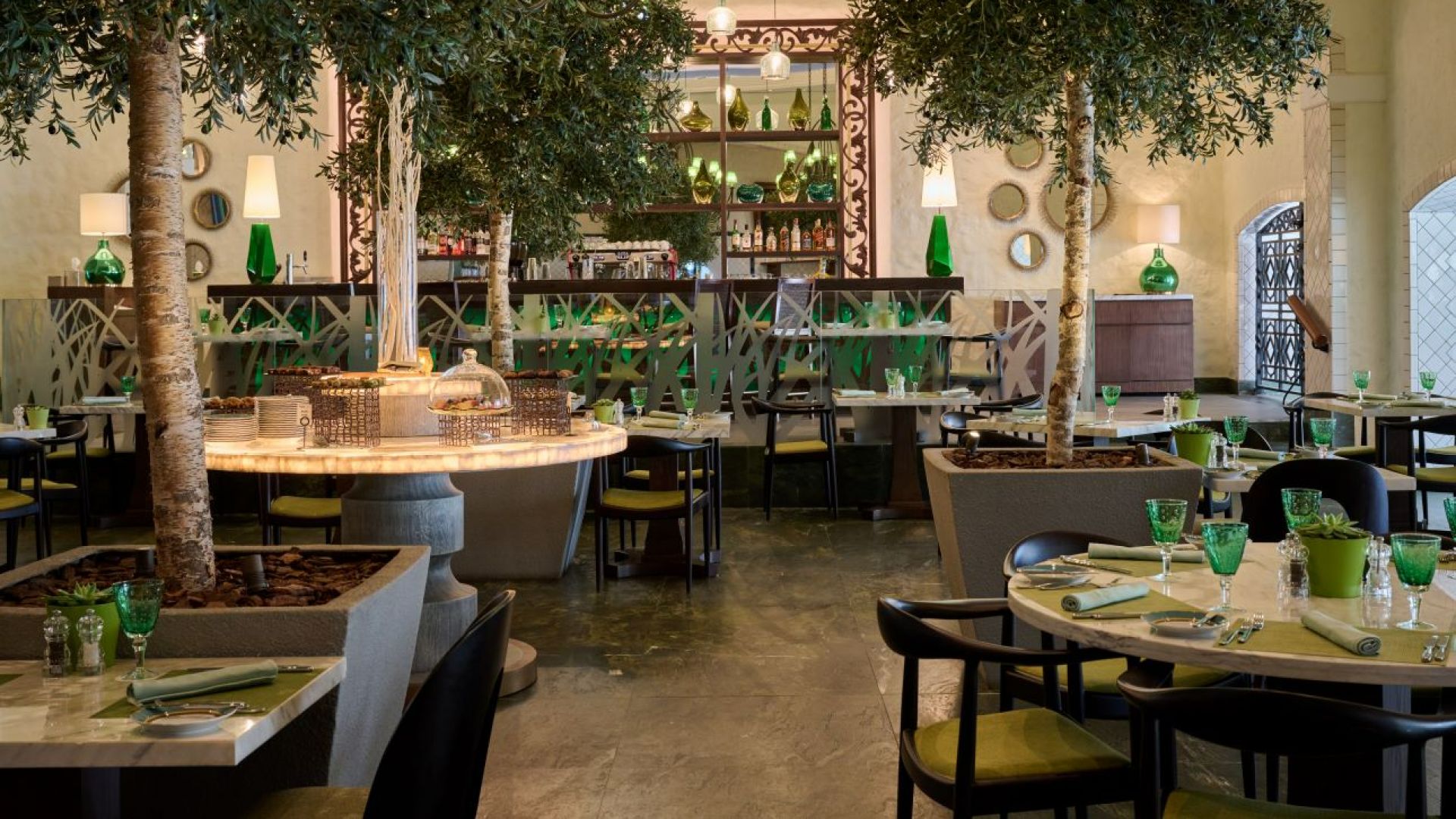 Begin your morning at Olives, where Mediterranean charm meets relaxed luxury in a peaceful garden setting at One & Only Royal Mirage. Surrounded by graceful olive trees and overlooking a turquoise pool, it’s the kind of place that invites you to linger and savour the moment. Bathed in soft natural light, Olives sets the scene for a leisurely breakfast. Enjoy a generous breakfast spread featuring freshly baked viennoiseries, a selection of hot dishes, and regional favorites. Enjoy eggs prepared to your liking, complemented by barista-made coffee, soothing herbal teas, and vibrant fresh-pressed juices.