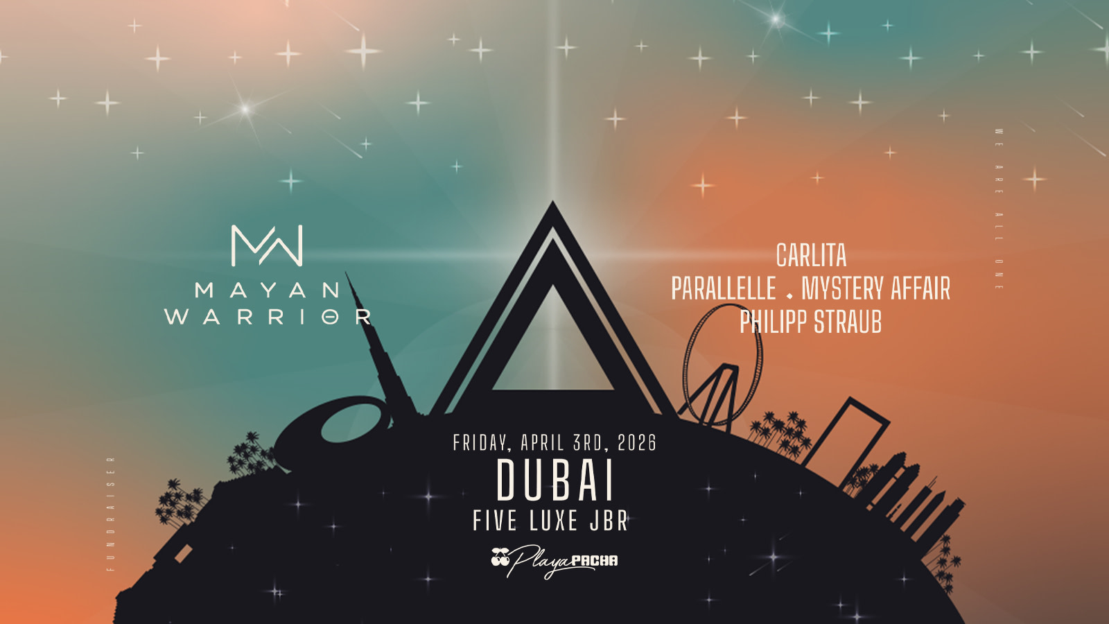 Mayan Warrior arrive at Playa Pacha on Friday 3 April with one of the most iconic immersive experiences in electronic music. Born at Burning Man, the collective is globally renowned for fusing music, art, ritual and powerful visual storytelling into transformative nights that go far beyond a DJ set. Headlining the night is Carlita, known for her hypnotic sound, anthems like “Bon Trip”, and her deep connection to the Ibiza and the underground scene. She is joined by Parallelle, Mystery Affair and Philipp Straub, delivering a carefully curated journey from start to finish. All set at Playa Pacha, FIVE LUXE JBR — open-air, beachfront, with panoramic views of the Dubai Eye and the Arabian Sea