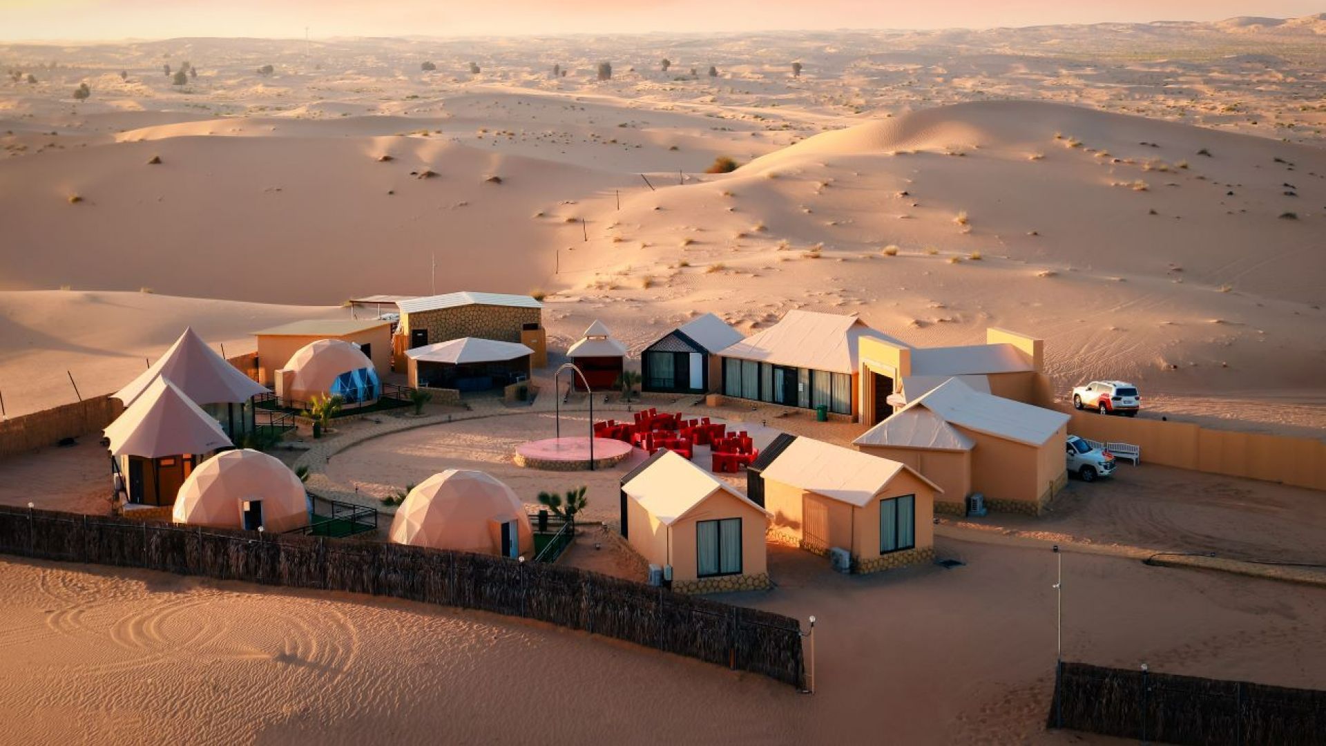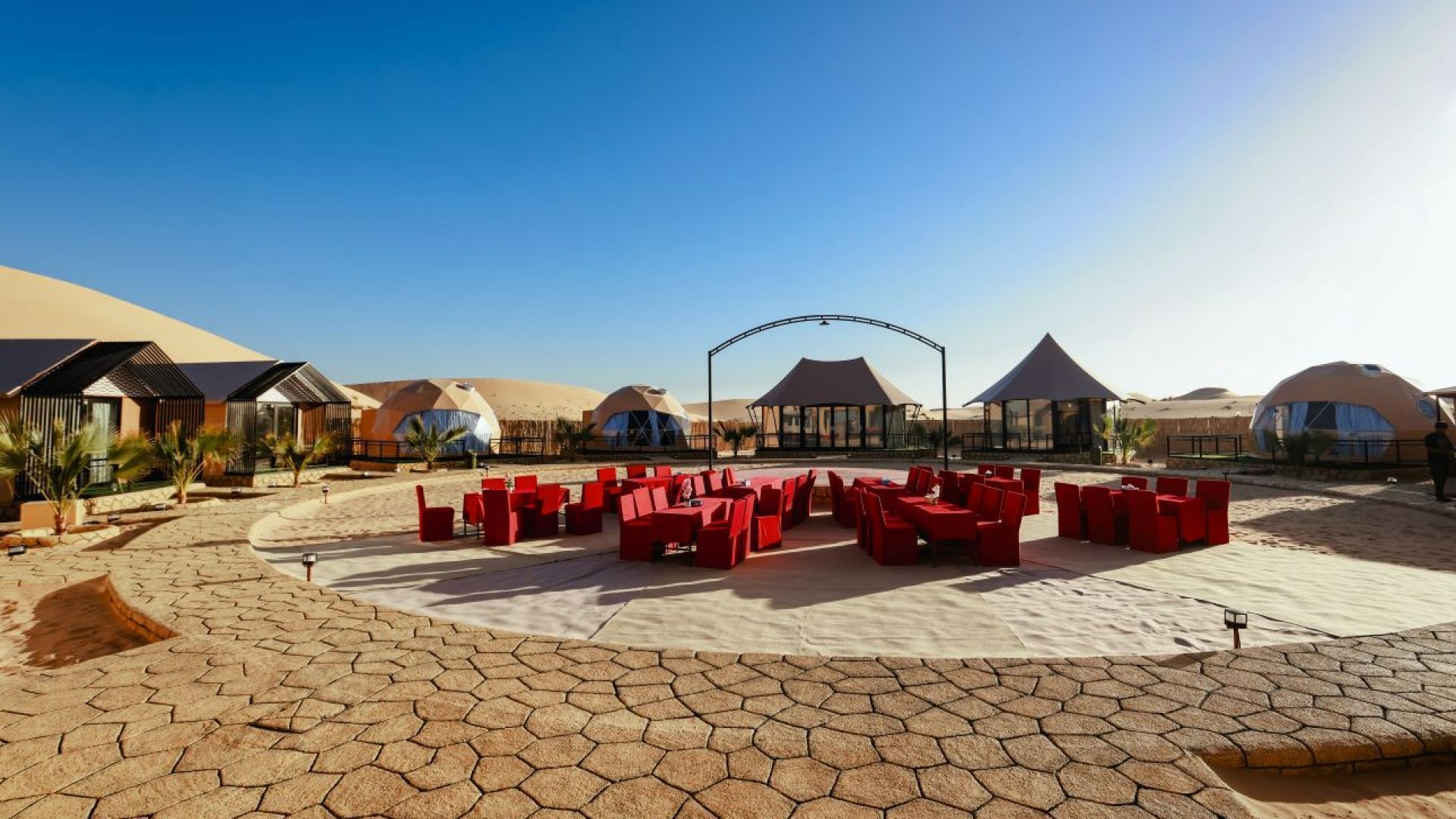 Heritage Lodge with Desert View at Bait Al Sukoon is a serene desert haven where Arabian elegance meets peaceful tranquility. Nestled in the heart of Desert Rose Village, this exquisite retreat blends timeless tradition with modern luxury, offering an unforgettable escape bathed in golden light. Every corner of Bait Al Sukoon is crafted to inspire and soothe. Elegant rooms feature handcrafted décor, warm desert tones, and soft, sunlit hues that mirror the beauty of the surrounding dunes. Step onto your private terrace at sunset and watch the desert shimmer beneath the fading light. Savor the authentic flavors of Arabian cuisine, rich in heritage, or embark on exciting desert adventures, from thrilling dune bashing to serene camel rides across the sands. As night falls, gather around cozy bonfires, enjoy captivating cultural performances, and embrace the stillness of the starlit desert sky. At Heritage Lodge with Desert View at Bait Al Sukoon, hospitality is not just a tradition; it’s a way of life. From the warm welcome of Arabic coffee and dates to the attentive care of your hosts, every moment is designed to make you feel truly at home.