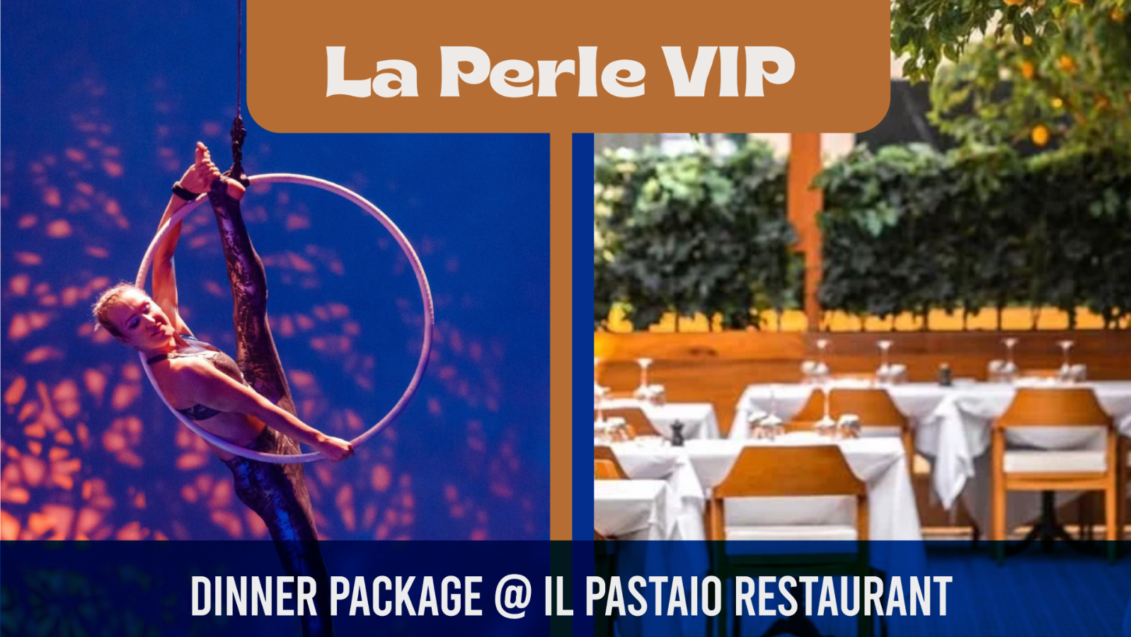Enjoy a Set menu Il Pastaio Italian Restaurant with the VIP treatment with this dinner package. Luxury in the heart of the theatre. As a VIP, you'll be able to enter through our exclusive VIP lounge area, where you can hang out pre-show and have complimentary savoury and sweet snacks, candy, and beverages. Once in the theatre, VIPs will be able to enjoy the show with great views and larger seats. Dinner timing: Please specify your restaurant choice at time of booking. The reservations will be made automatically at the selected restaurant as per the below timings: 8:00 pm for the 6:30 pm shows 7:00 pm for the 9:00 pm shows La Perle by Dragone is the regions first permanent show, located in the heart of Dubai at Al Habtoor City and brought to Dubai by Al Habtoor Group. The show was created by legendary Artistic Director, Franco Dragone, famed for his work including Le Rêve in Las Vegas and The House of Dancing Water in Macau.