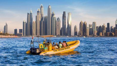 Discover Dubai's most exclusive and iconic sights from a unique perspective with the Atlantis Tour! This 75-minute guided tour takes you on a thrilling ride in the comfort and safety of our rigid, inflatable ribs, where you'll get to admire some of the most beautiful waterfront developments in the region. Your journey begins as you cruise across the waters of the Dubai Marina. An expert guide will provide fascinating insights into the city's history, culture, and architecture. You'll be amazed by the stunning skyline of towering skyscrapers and their impressive architecture. Next, you'll cruise along JBR, where you'll see a lively beachfront promenade with cafes, restaurants, and shops. You'll then head towards Bluewaters Island to marvel at the world's largest observation wheel, Ain Dubai, which stands at a height of 250 meters. After that, you'll journey to Palm Jumeirah, a man-made island that resembles a palm tree, where you'll see some of the most luxurious villas and hotels in Dubai. Finally, you'll arrive at the world-renowned Atlantis the Palm, where you'll get a chance to take in the breathtaking views and snap some memorable photos. Throughout the tour, your expert guide will provide fascinating facts about each location you visit, making this a truly enriching experience. Don't miss out on this unforgettable journey through Dubai's most iconic sights.