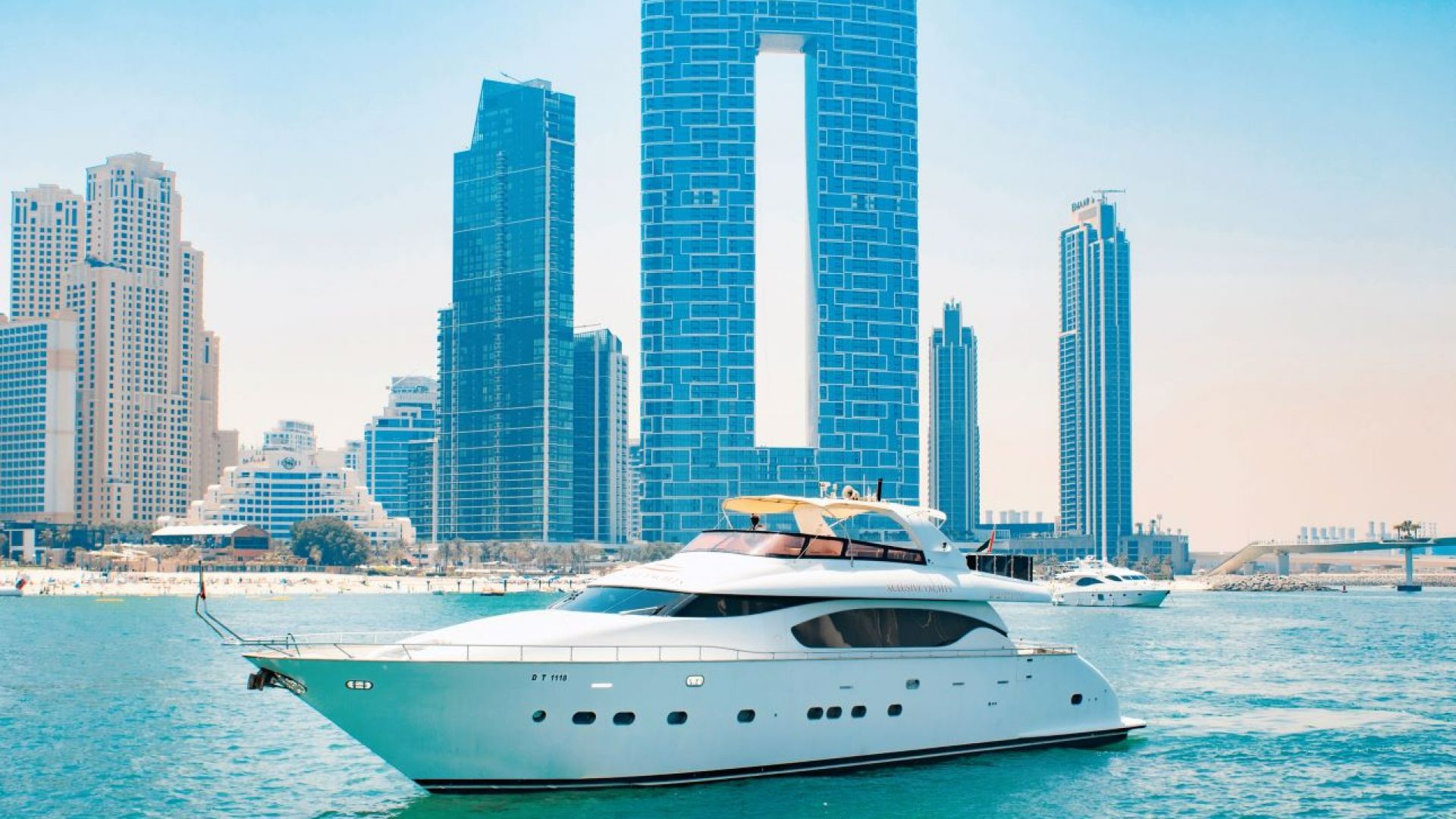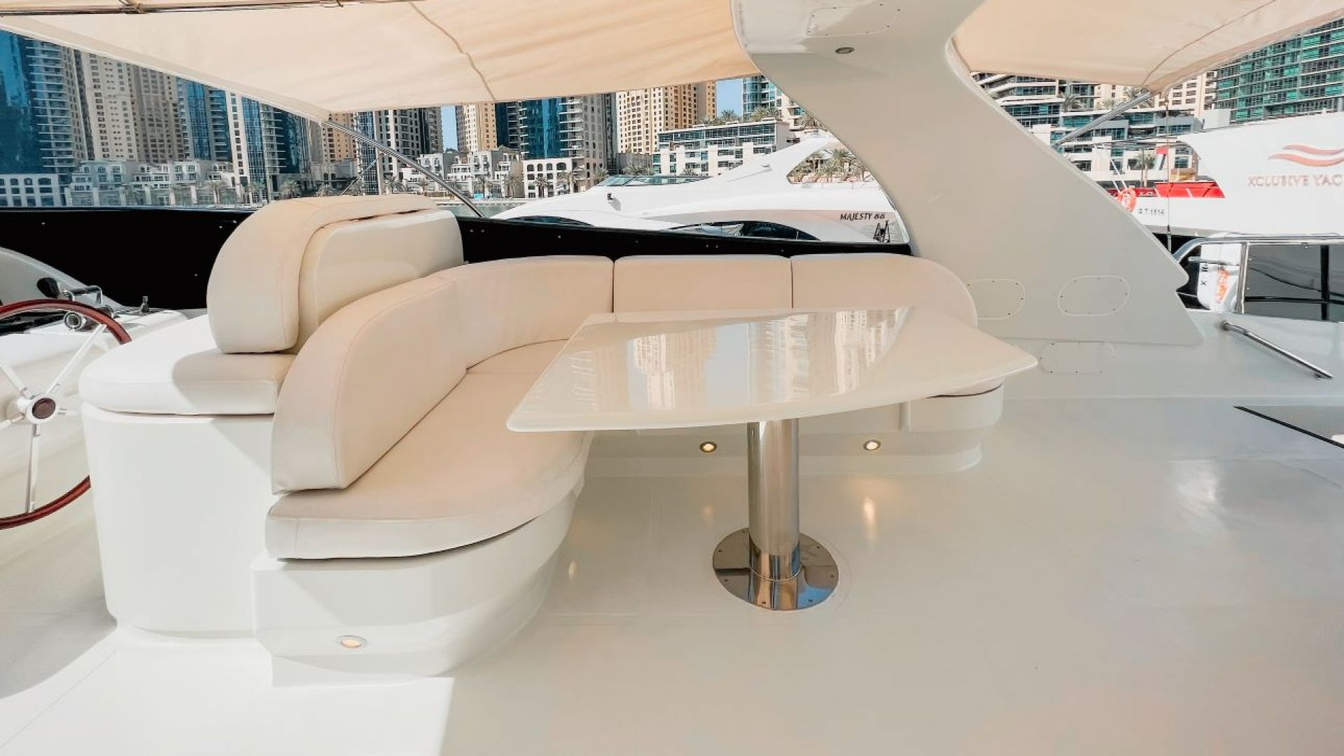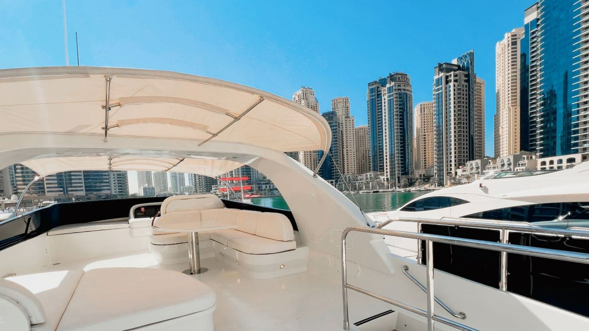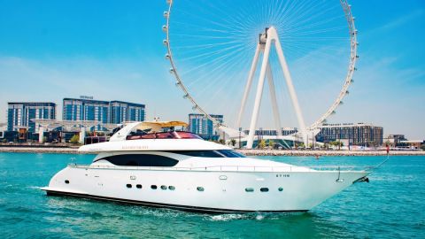 Embark on an unforgettable experience that will leave you feeling like a star onboard our luxurious yacht. You will be greeted like royalty with a red carpet entrance. The journey begins at Dubai Marina, where you can marvel at the breathtaking sights of the magnificent skyscrapers along the waterfront. The cruise will then take you to Bluewaters Island, where you will have the opportunity to capture unforgettable photos with Ain Dubai, the world’s largest observation wheel, as your backdrop. As you sail towards Jumeirah Beach, you will experience the vibrant atmosphere along Dubai’s shoreline first-hand. The voyage continues around the iconic man-made island, Palm Jumeirah, where the world-famous Atlantis Hotel is located, and then proceeds towards the legendary Burj Al Arab. Stay refreshed and cool while enjoying the stunning views of these iconic landmarks, sipping on ice-cold soft drinks. With the Bluetooth system onboard, you can set the perfect mood with your music. But the luxury doesn't stop there; you can relax in utmost comfort with onboard beds, a saloon, air conditioning, and even bathrooms. Whether you are looking for a romantic getaway or a fun day out with friends, our yacht provides everything you need for the ultimate luxurious experience.