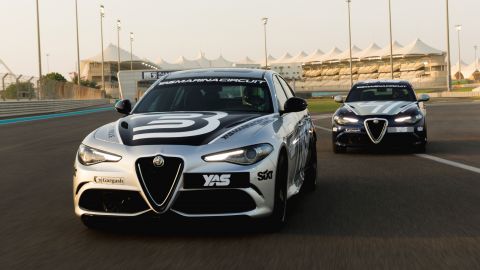 Alfa Romeo Giulia Quadrifoglio, on the topic of chassis details responsible for road holding, handling behaviour and ride comfort, the Giulia (952) has Independent Double Wishbones. This passenger experience is not only about the illustrious vehicle and the purr of one of the best-sounding engines ever made but also the skills of the professional racing driver at the wheel. Sit back and immerse yourself in the thrilling roar of the 510 BHP Twin Turbo engine as it powers through the track's challenging twists and turns, delivering an exhilarating and unforgettable driving experience.